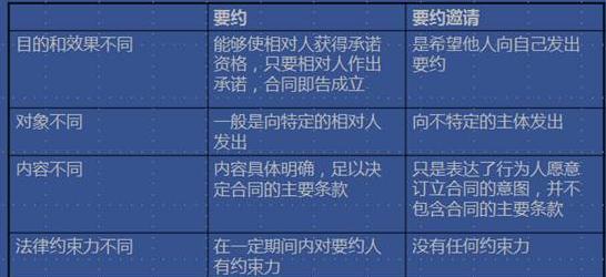 兩者最根本的區別就在于要約有成立合同的具體確定的內容,而要約邀請則不必也不應具備滿足合同成立的內容,否則其就成為要約而不是要約邀請。要約一經相對方承諾,合同即告成立,如未按規定履行,則要承擔違約的后果。