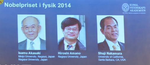 瑞典皇家科學(xué)院2014年10月7日宣布,將2014年諾貝爾物理學(xué)獎授予日本科學(xué)家赤崎勇、天野浩和美籍日裔科學(xué)家中村修二,以表彰他們發(fā)明藍(lán)色發(fā)光二極管(LED),并因此帶來新型的節(jié)能光源。三名獲獎?wù)邔⑵椒?00萬瑞典克朗(約合111萬美元)的諾貝爾物理學(xué)獎獎金。