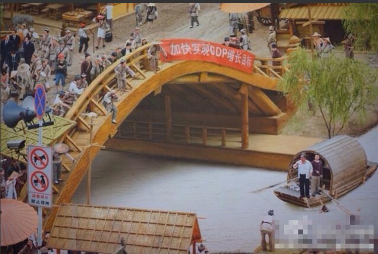 “我爸是李剛”、“城管打人”、“征爹求包養”等劇情取代了汴河兩岸的自然風光和繁榮集市。在這幅作品中展現了約40個近年來的熱點事件,每個都反映了社會的不同側面。