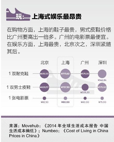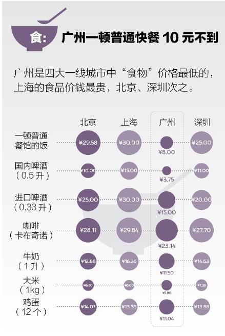 北上廣深生活成本全部高居全球前五十,其中北上廣還沖入了亞洲前十位。據(jù)上海新聞播報(bào)報(bào)道,在北上廣深中,廣州是食品價(jià)格最低的,上海食品價(jià)格最貴,北京、深圳次之。在住房方面,北京價(jià)格稱霸,廣州最便宜。在娛樂(lè)方面,北京和上海的電影票都很貴,最便宜的還是廣州。