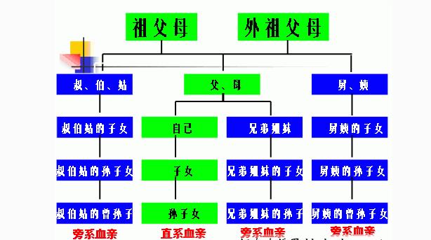 直系血親的直接血緣關系,是指出生關系。包括生出自己的長輩(父母,祖父母,外祖父母以及更上的長輩)和自己生出來的晚輩(子女,孫子女,外孫子女以及更下的直接晚輩)。
