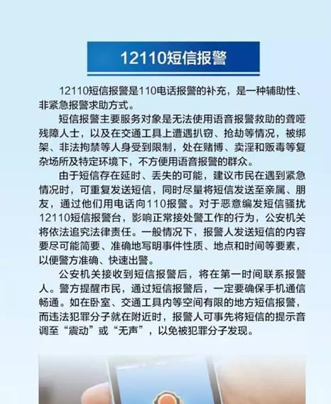 匪警短信報(bào)警號(hào)碼:12110