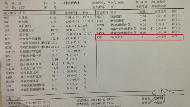 心血管病:在痛疼開始后數小時內,CRP升高,3~4d達高峰,在CK-MB回到正常后7~10d也降至正常。