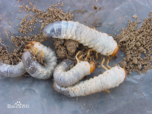 金龜子成蟲俗稱栗子蟲、黃蟲、瞎眼闖子(魯南)、打燈虎兒,幼蟲統稱蠐螬,俗稱土蠶、地蠶、地狗子,長約3~4厘米,色白,頭黃棕色,口堅硬,身體常彎曲成馬蹄狀。生活史較長,除成蟲有部分時間出土外,其他蟲態均在地下生活,在我國完成一代的時間一般為1~2年到3~6年,以幼蟲和成蟲越冬。金龜子有夜出型和日出型兩種,夜出型夜晚取食為害,多有不同程度的趨光性,而日出型則白天活動取食。