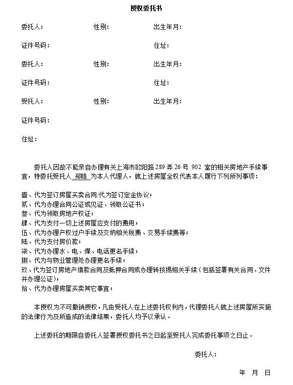 房屋買賣授權委托書