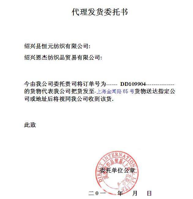 3、 本委托書以傳真或電子郵件方式發(fā)送給受托方執(zhí)行,傳真件以及電子郵件與原件具備等同效力。以委托方收貨后的實際簽收數(shù)量為產(chǎn)品結(jié)算數(shù)量,結(jié)算價格以及其它未盡事宜按雙方簽訂的《經(jīng)銷合作協(xié)議書》的相關(guān)規(guī)定執(zhí)行。