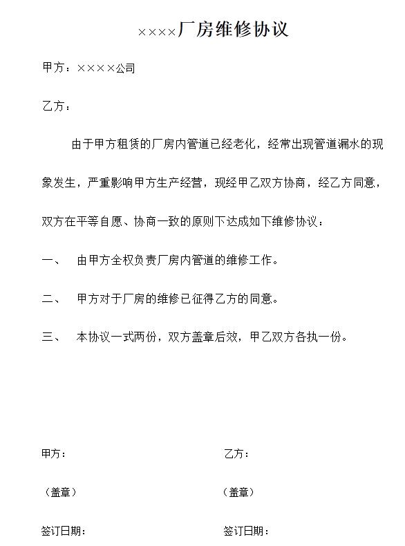 以下是為您推薦的《廠房維修合同模板》,希望能對您的工作、學習、生活有幫助,歡迎閱讀參考!