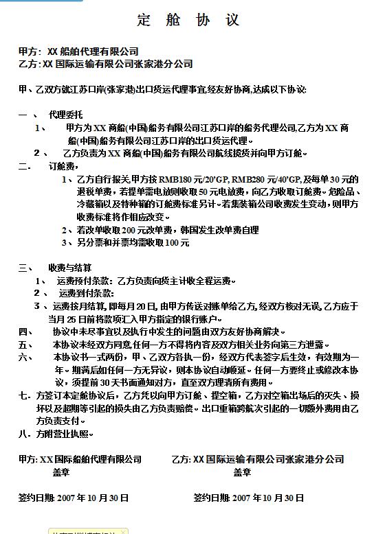 集裝箱班輪訂艙協議