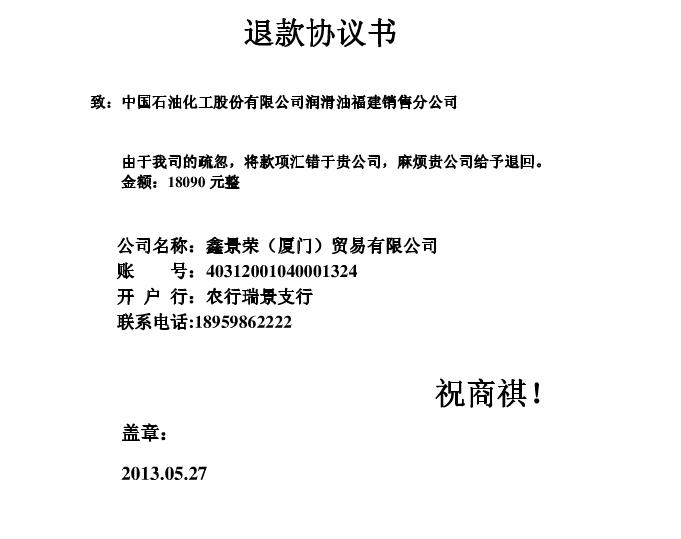 產(chǎn)品退款協(xié)議