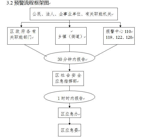 3.1.2.2區(qū)社會(huì)安全應(yīng)急指揮部接到報(bào)告后,應(yīng)根據(jù)事件基本情況和級(jí)別,在依照處置權(quán)限及需要,迅速調(diào)集相關(guān)處置力量趕赴事件現(xiàn)場(chǎng)的同時(shí),在1小時(shí)內(nèi)向區(qū)應(yīng)急委及區(qū)政府有關(guān)部門(mén)報(bào)告。