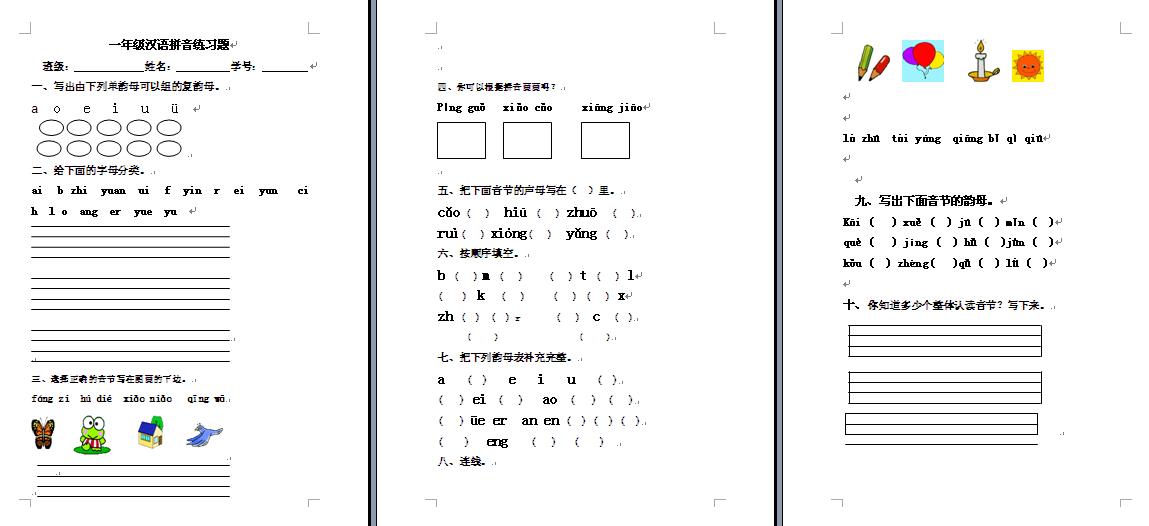 以下是為您推薦的《小學一年級漢語拼音練習題圖文》,希望能對您的工作、學習、生活有幫助,歡迎閱讀參考!