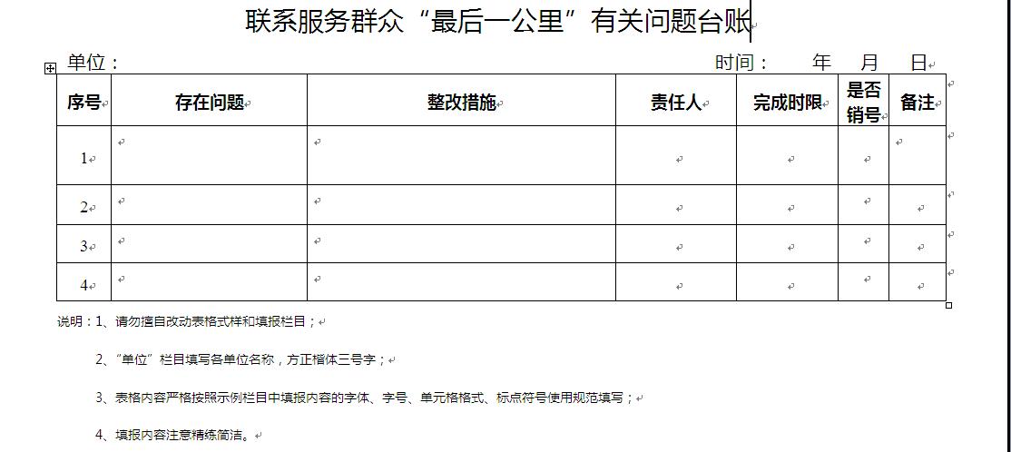 聯系服務群眾“最后一公里”有關問題臺賬
