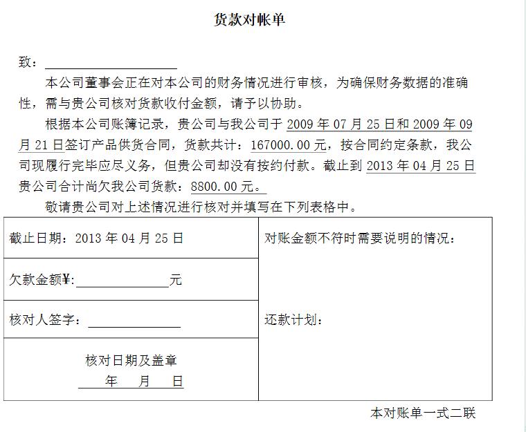 貨款對賬單格式 更新時間:2013-11-09 常用表格 以下是為您推薦的《貨款對賬單格式》,希望能對您的工作、學習、生活有幫助,歡迎閱讀參考! 【貨款對賬單格式】相關的文章 重慶市農(nóng)產(chǎn)品加工業(yè)示范園區(qū)申報表 重慶市農(nóng)產(chǎn)品加工企業(yè)獎補資金申請表 防范新冠疫情:中小學校學生及家庭成員活動軌跡統(tǒng)計表 稅務證件掛失報告表 發(fā)票掛失損毀報告表模板 發(fā)票掛失損毀報告表 掛失損毀發(fā)票清單 關于退還多報的差旅費說明 事業(yè)單位解除聘用合同證明書 重慶市事業(yè)單位工作人員解除聘用合同申請表 農(nóng)業(yè)新型經(jīng)營主體貸款貼息申請表 2021年水產(chǎn)養(yǎng)殖發(fā)展扶持項目區(qū)級驗收表 水產(chǎn)養(yǎng)殖發(fā)展扶持項目鄉(xiāng)鎮(zhèn)街道驗收表 水產(chǎn)養(yǎng)殖扶持補助項目申報表 2021年農(nóng)業(yè)產(chǎn)業(yè)項目驗收表 黔江區(qū)農(nóng)產(chǎn)品品牌培育補助申請表 網(wǎng)站使用說明