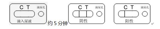 步驟:滴入3-5滴尿液約五分鐘后,根據試劑盒顯示情況進行判斷: