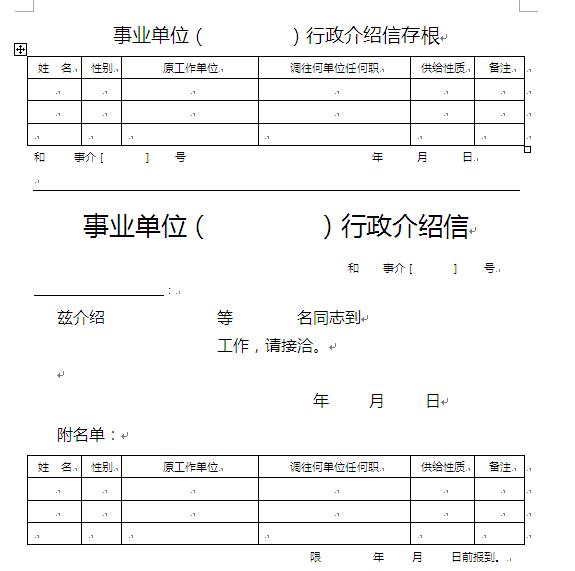 事業單位行政介紹信