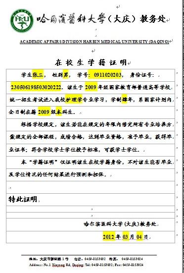 張傳芳,女,漢族,身份證號為612701199011xxx,出生于1990年11月27日。該生2010年 8月被我校(西安外事學院)工學院交通運輸專業錄取(本科、普通全日制),學制四年,學號100107200201。如修完教學計劃要求的全部課程且成績合格,將于2014年6月畢業,獲得本科畢業證和工學學士證。