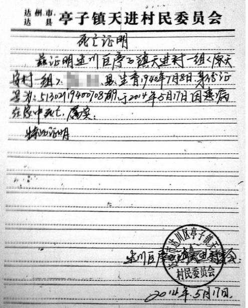 職工可憑親屬的死亡醫學證明書復印件請喪假。正規的死亡證明是醫院開的,并蓋有醫院的診斷證明專用章,一共三聯,一聯是《死亡醫學證明》一聯是《亡者火化證明》一聯是《亡者注銷戶口證明》,三聯俱全就是真的,還有就是看有沒有診斷醫生簽字,醫院蓋章。如果沒有《死亡醫學證明》,可由死者戶口所在的村委會出具證明。