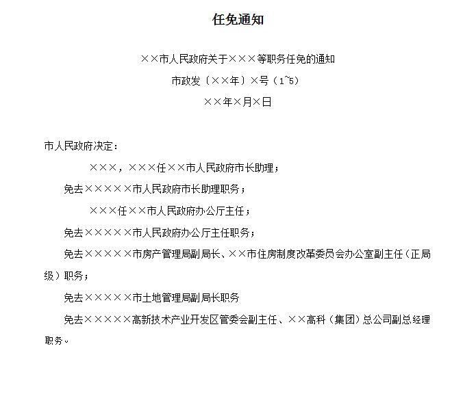 政府機(jī)關(guān)任免職通知
