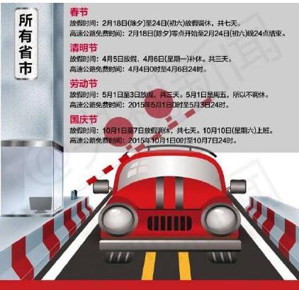 另外,2015春節(jié)期間,所有免費(fèi)高速公路都實(shí)行不發(fā)卡抬桿放行,大大節(jié)省等待時(shí)間,提高出行效率。