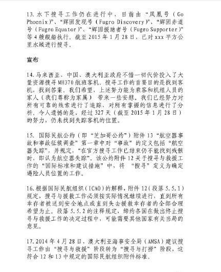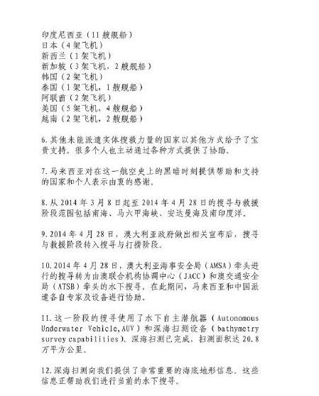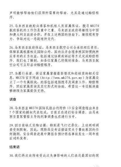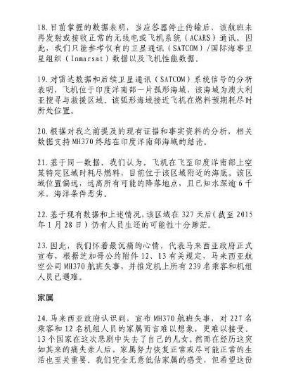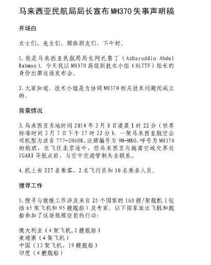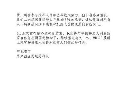 馬來(lái)西亞宣布M馬航H370失事聲明全文