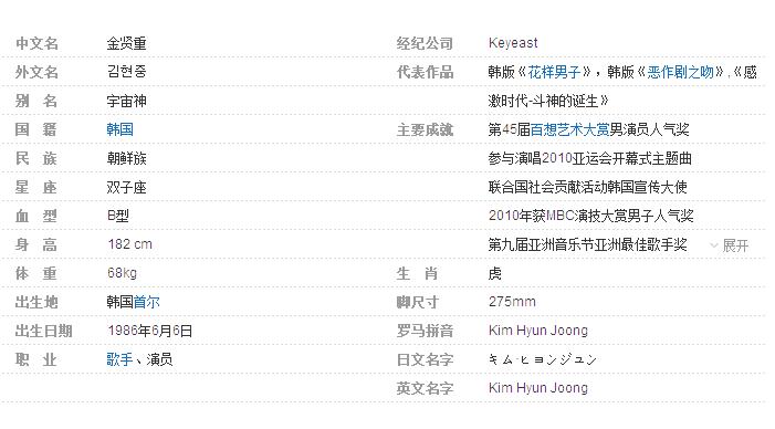 金賢重(Kim Hyun Joong),1986年6月6日出生于韓國,是兼具歌手,演員,設計師的多重身份的藝人。2005年以韓國男子團體SS501的隊長身份出道,因其鬼馬性格獲得四次元稱號。