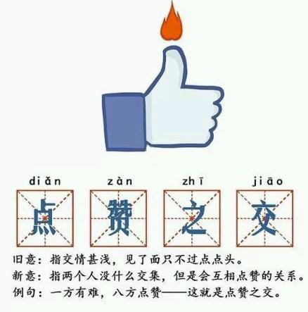 例句:一方有難,八方點(diǎn)贊——這就是點(diǎn)贊之交。