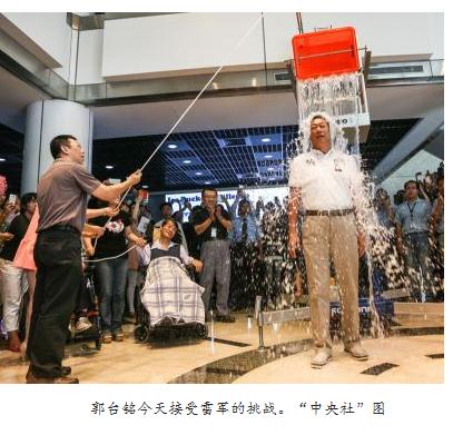 郭臺銘于2014年8月19日完成挑戰,并點名日本軟銀創辦人孫正義、美國科學院院士謝曉亮、藝人林志玲三人,三人均答應接受挑戰。