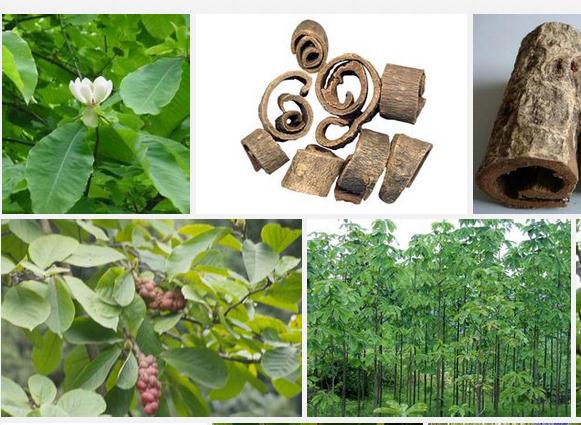 別名紫樸、紫油樸、溫樸等,拉丁學名:Magnolia officinalis Rehd. et Wils.,為木蘭科。樹皮厚,褐色,不開裂;小枝粗壯,淡黃色或灰黃色,幼時有絹毛;頂芽大,狹卵狀圓錐形,無毛。主產于四川、湖北等地。4~6月剝取,根皮及枝皮直接陰干,干皮置沸水中微煮后堆置陰濕處,“發汗”至內表面皮紫褐色或棕褐色時,蒸軟取出,卷成筒狀,干燥。