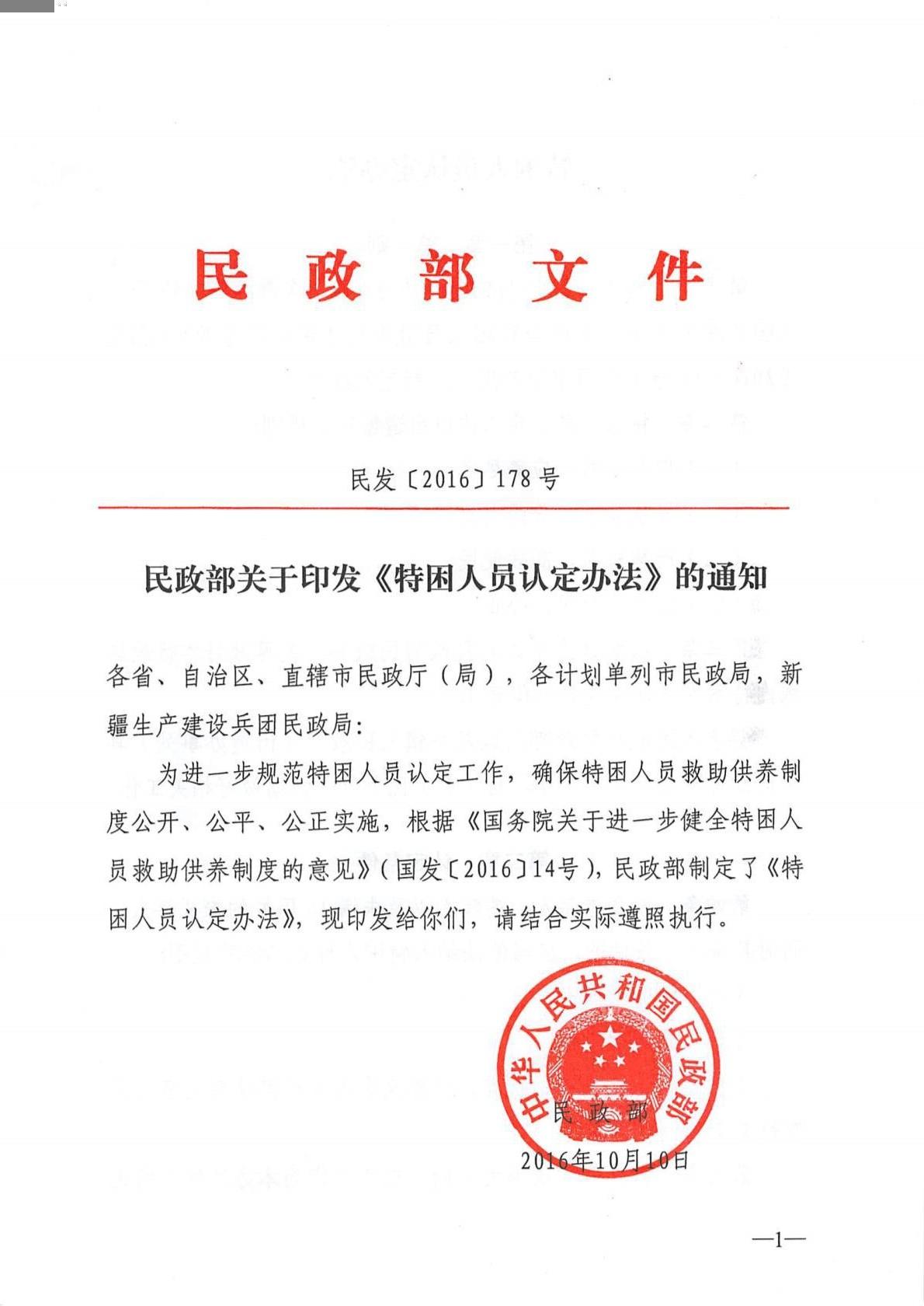 為進一步規(guī)范特困人員認定工作,確保特困人員救助供養(yǎng)制度公開、公平、公正實施,根據《國務院關于進一步健全特困人員救助供養(yǎng)制度的意見》(國發(fā)〔2016〕14號),民政部制定了《特困人員認定辦法》。