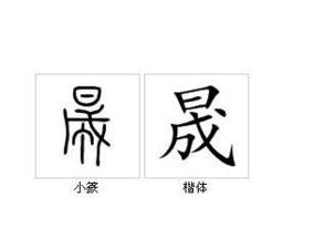 形聲。字從日,從成,成亦聲。“成”意為“百分之百”、“完全”。“日”指“日光(的熾烈程度)”。“日”與“成”聯(lián)合起來(lái)表示“日光達(dá)到最熾烈程度”。本義:中午12點(diǎn)的日光。引申義:最高程度。最大程度。