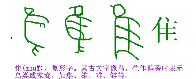 隹多音字,有三個(gè)讀音,[zhuī],隹 [cuī],隹 [wéi]。